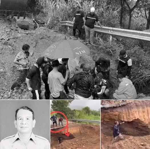ขณะที่กำลังตรวจสอบนั้นเกิดดินบนถนนทรุดตัวทับร่าง คุณลุงประเสริฐ